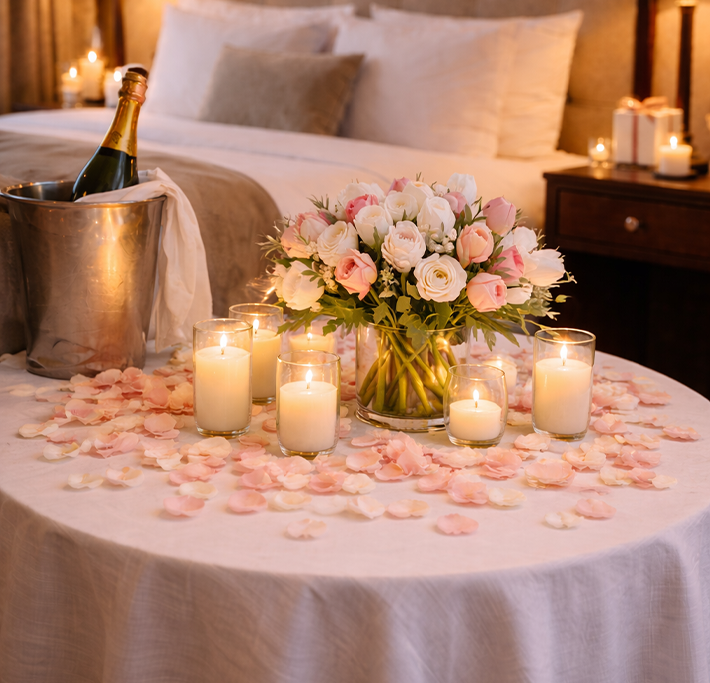 Anniversaries, date nights, birthdays, and romantic surprises.