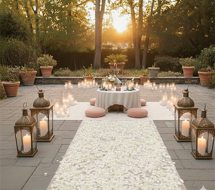 A romantic, personalized dinner setup designed to create a beautiful, intimate atmosphere — styled around your color palette, occasion, or your partner’s favorite aesthetic.